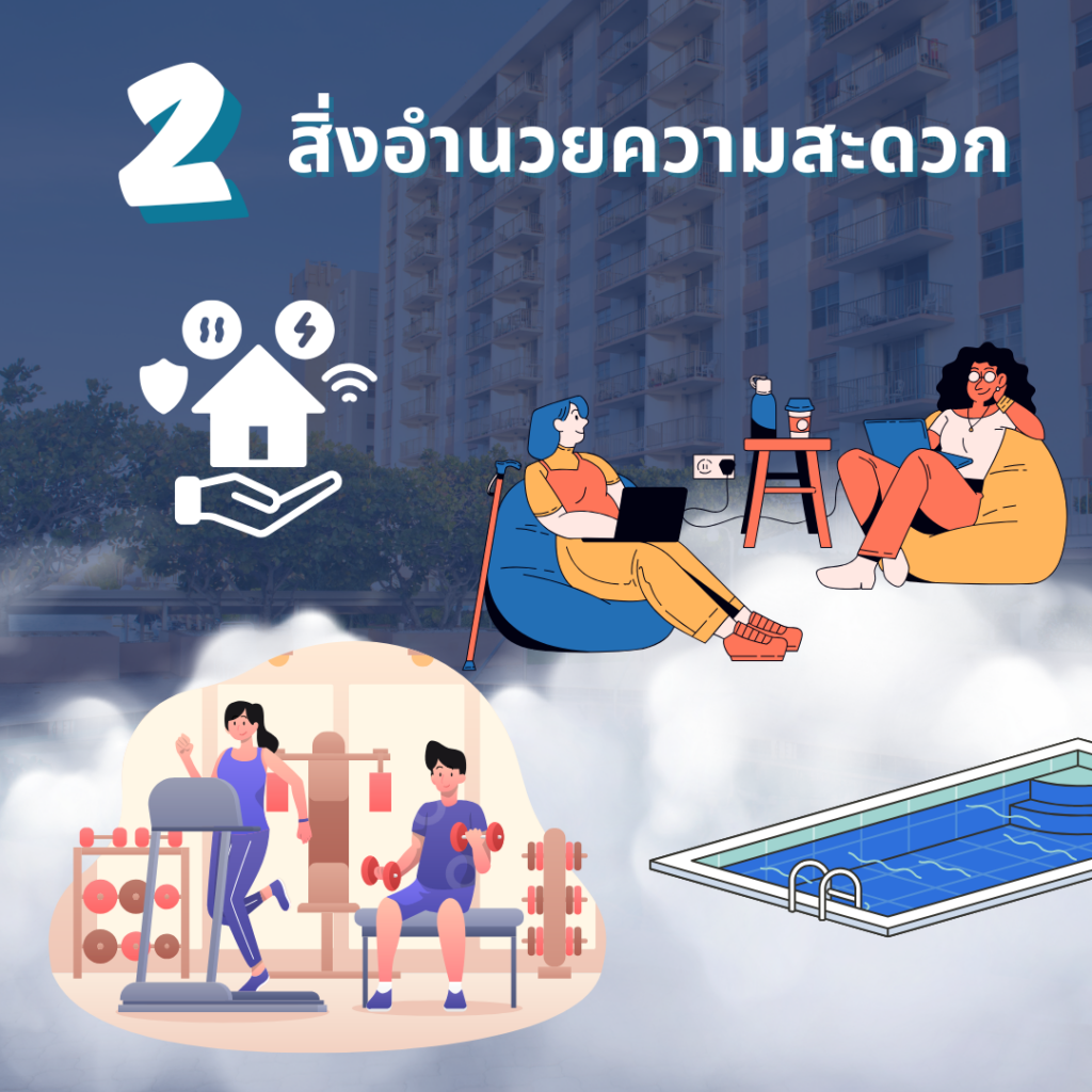 ตรวจสอบสิ่งอำนวยความสะดวกที่คอนโดมีให้ เช่น สระว่ายน้ำ ฟิตเนส ห้องสมุด หรือพื้นที่สำหรับทำงานร่วมกัน เพื่อให้คุณสามารถใช้ชีวิตได้อย่างสะดวกสบาย